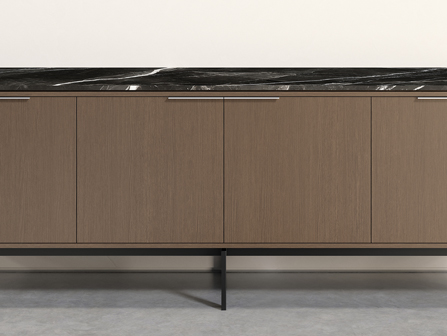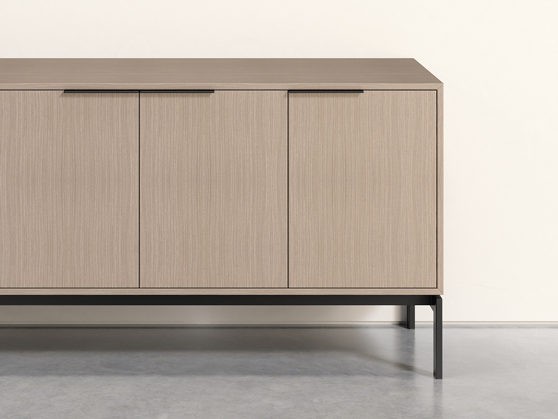 Warm woods meet painted finishes and crisp reveals — Elevate credenzas turn practical storage into sculptural elements with a curated material vocabulary.